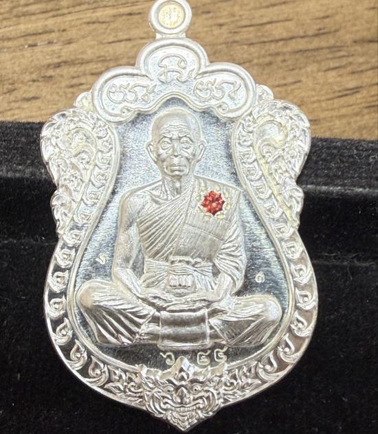 รายละเอียด เหรียญเสมา รุ่น มนต์มหากาฬ หลวงพ่อคูณ วัดบ้านไร่ ปี 2557 เนื้อเงินฝังทับทิม หมายเลข 644