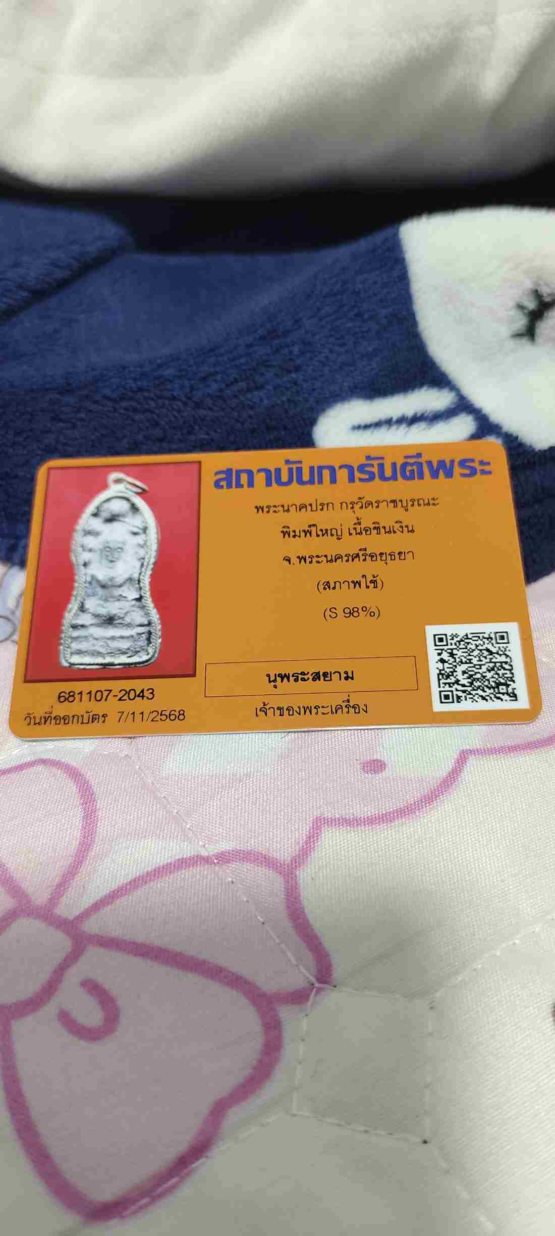 พระนาคปรก พิมพ์ใหญ่ เนื้อชินเงิน กรุวัดราชบูรณะ จ.อยุธยา พร้อมบัตร |