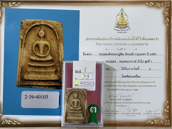 สร้างปี 2488 สภาพสวย สมบูรณ์ ไม่หักไม่ซ่อม รับประกันพระแท้ ดูง่าย ใบประกาศรางวัลที่3งานสมาคม