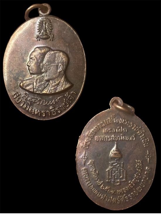 เหรียญสยามินทราธิราชเจ้า ที่ระลึกในพิธีเสด็จพระราชดำเนินทรงเ ปิดอาคารสยามินทร์ คณะแพทยศาสตร์ศิริราชพยาบาล พ.ศ.2534