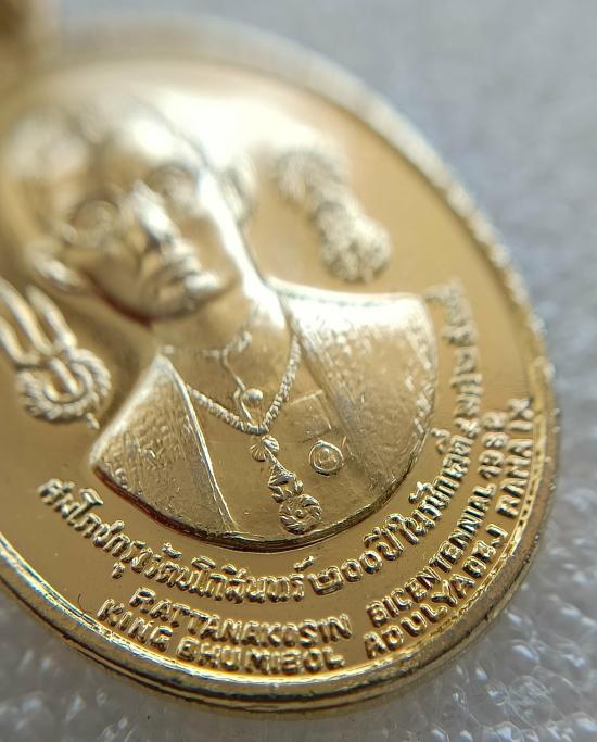 เหรียญในหลวง ร.9 ด้านหลังพระมหากษัตริย์ 8 รัชกาล สมโภชกรุงรัตนโกสินทร์ 200 ปี ปี 2525 เนื้อกะไหล่ทอง (รับประกันพระตามกฎครับ)