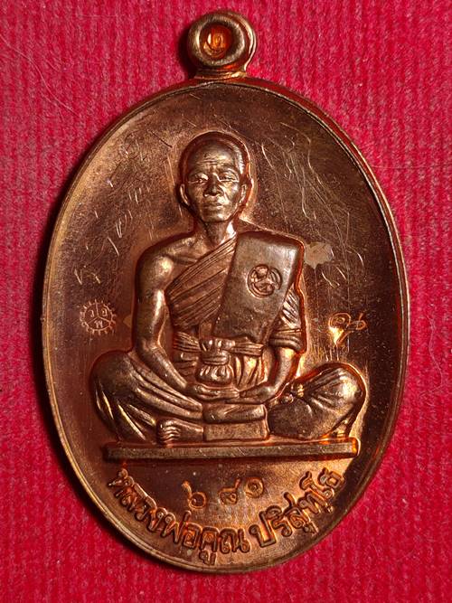 เหรียญประสบการณ์ หลวงพ่อคูณ รุ่น ย้อนยุครุ่นสร้างบารมี ปี 19 ออกวัด ใหม่อัมพวัน ปี 54 เนื้อ ทองแดงผิวไฟ หมายเลข 681 มีจาร สภาพสวย เคาะเดียวแดง