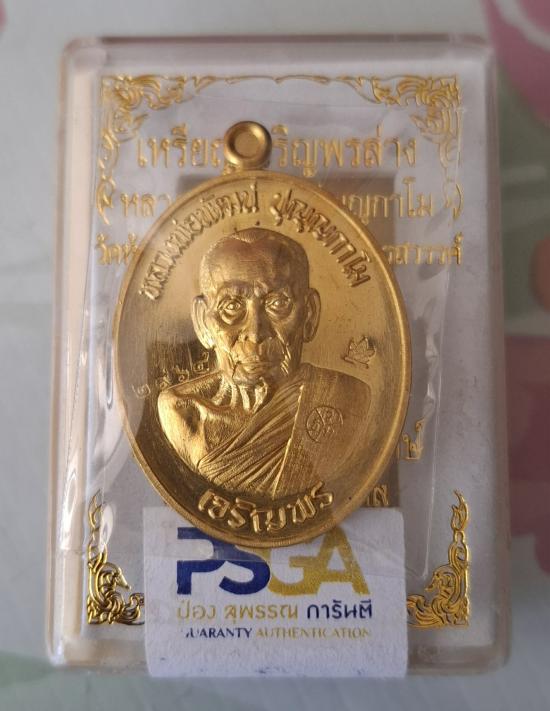 เหรียญเจริญพรล่าง 63 ขอบเรียบ หลวงพ่อพัฒน์ ปุญฺญกาโม เนื้อฝาบาตรเลข ๒๙๖๔ สวยๆ กล่องเดิม
