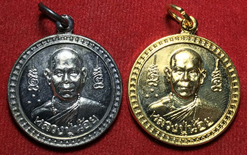 เหรียญ รุ่นแรก หลวงปู่น้อย วัดตึก นนทบุรี กะไหล่เงิน กะไหล่ทอง 2เหรียญจารมือ