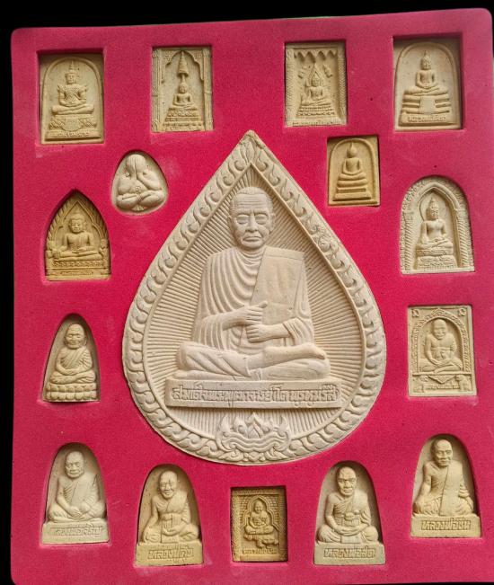 พระผงของขวัญมหามงคล ชุดกล่อง ๑๖องค์ รุ่นสร้างพระอุโบสถ วัดประชุมราษฎร์ (ปากคลอง๖) อ.ลำลูกกา จ.ปทุมธานี ๒๔ธ.ค.๒๕๔๑ หลวงพ่อเปิ่น วัดบางพระ จ.นครปฐม ปลุกเสก