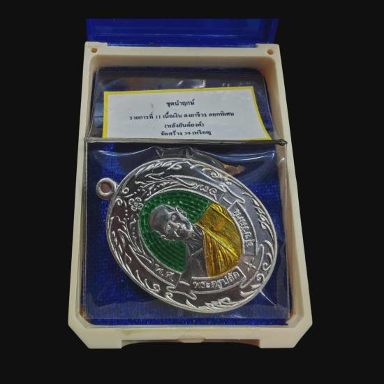 พระอาจารย์ต้อม วัดท่าสะแบง จ.ร้อยเอ็ด รุ่น อุดมทรัพย์ เหรียญรูปไข่ พิมพ์แกะสด ชุดนำฤกษ์ เนื้อเงิน ลงยาจีวร ต๊อกโค๊ตพิเศษ (หลังยันต์องค์) จัดสร้าง 39 เหรียญ ต๊อกโค๊ต 37 พร้อมกล่องเดิม