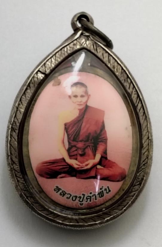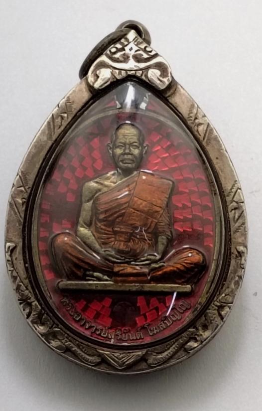 กรอบเงินสั่งทำพร้อมเหรียญสร้างบารมีอาจารย์สุริยันต์เนื้อชนวนลงยาหลังรูปหลวงปูคำพันธ์เลข223