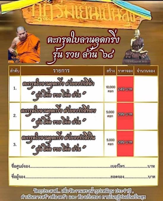 รายการที่2 จอง299บาท ถักเชือกทาทอง ปิดแผ่นเงิน ซีลเดิมลุ้นโค๊ตรวย ลุ้นเลขสวย