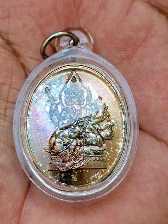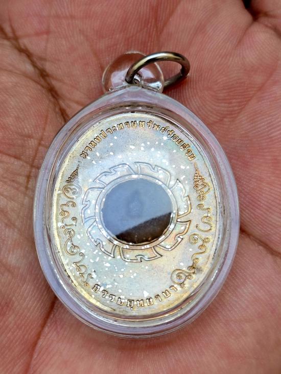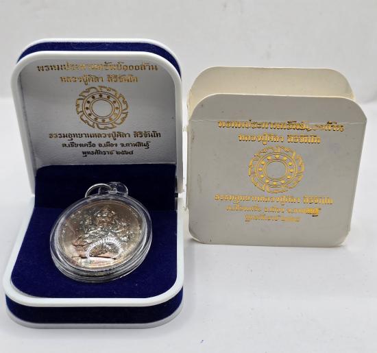 เหรียญ พรหมประทานทรัพย์๑๐๐ล้าน หลวงปู่มหาศิลา สิริจันโท ธรรมอุทยาน วัดพระธาตุหมื่นหิน จ.กาฬสินธุ์ เนื้อนวฤทธิ์ พลายเงิน เลข 931 เลี่ยมกันน้ำ มีกล่องเดิม