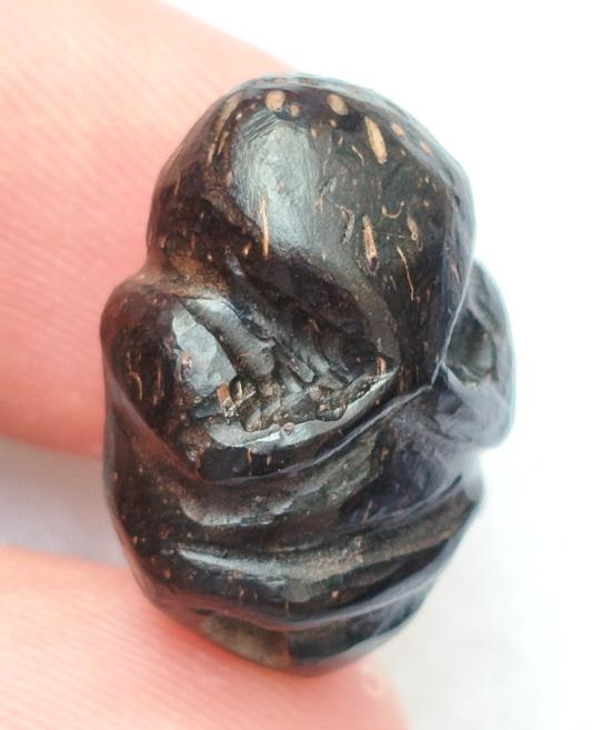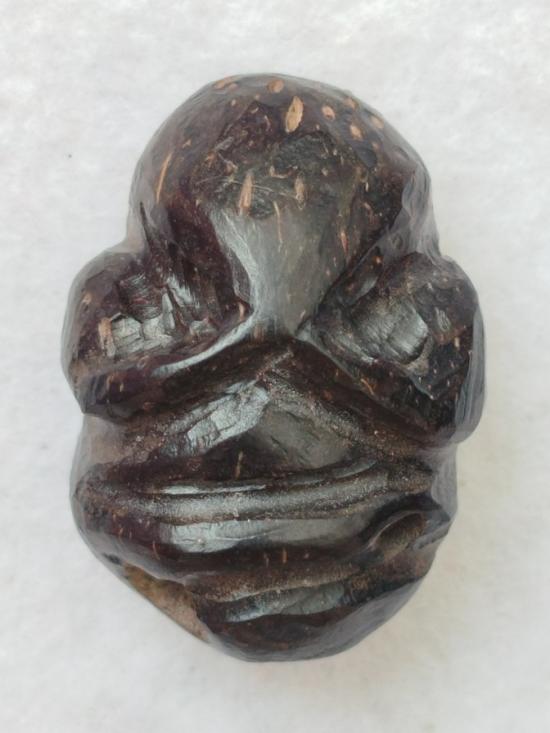 พระปิดตาแกะจากคตมะพร้าว มีจารด้านหลัง