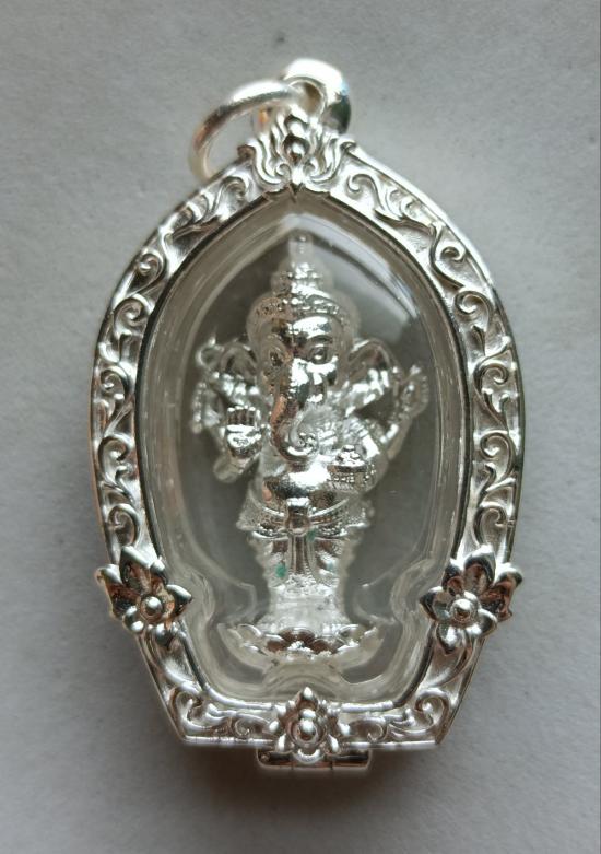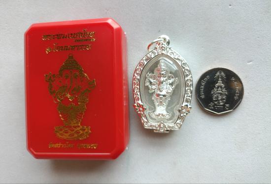 วัดใจเคาะเดียวแดงจ้า รูปหล่อพระพิฆเนศ เนื้อนวะชุบเงินเงา พร้อมตลับชุบเงินเงา เลี่ยมกันน้ำ หมายเลข2 เคาะเดียวแดงจ้า