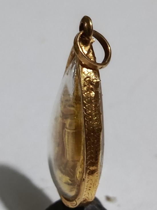 พระหลวงพ่อวัดบ้านแหลม เนื้อกะใหล่ทอง [ เลี่ยมทองคำแท้ ตอก75% ] เด็กแขวงได้