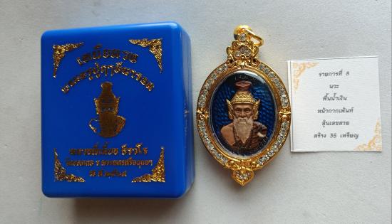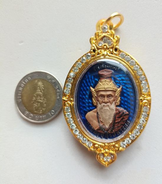 วัดใจเคาะเดียวแดงจ้า เหรียญพระฤาษีนารอด หลวงพี่เลี้ยง วัดจอมเกษ เนื้อนวะเพ้นท์ฤาษี ลงยาน้ำเงิน หมายเลข1 พร้อมตลับอิตาลีฝังเพชร เคาะเดียวแดงจ้า