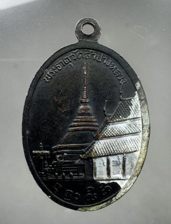 เหรียญพระเจ้าแก้วมรกตลำปาง วัดพระธาตุลำปางหลวง เนื้อทองแดง ปี2514 " หลวงพ่อเกษม เขมโก ปลุกเสก.....100 บาท |