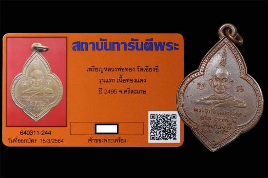 วัดใจเริ่มต้นที่ 200 *ปี2495 รุ่นแรก * (หลวงพ่อทอง วัดเอียงอี จ.ศรีสะเกษ) .พร้อมบัตร G-PRA |