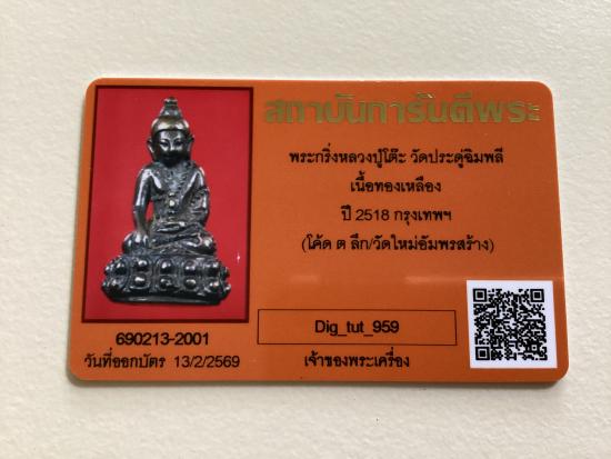 พระกริ่งวัดใหม่อัมพร ปี2518 หลวงปู่โต๊ะปลุกเสก ใต้ฐานตอกโค้ด ต มาพร้อมบัตร Gpra