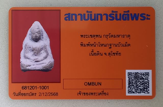 +++ พระเชตุพน พิมพ์หน้าโหนกฐานบัวเม็ด เนื้อดิน กรุวัดมหาธาตุ จ.สุโขทัย + บัตร G-Pra +++
