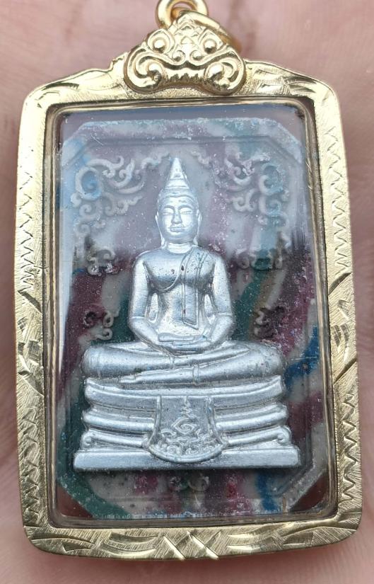 หลวงพ่อโสธร พิมพ์แปดเหลี่ยม รุ่น"ประทานพร"ปี63 วัดโสธรวรารามวรวิหาร จ.ฉะเชิงเทรา เนื้อผงก้นครก หน้ากากเงิน อุดกริ่ง เลี่ยมกรอบทองไมครอนพับหลัง หมายเลข ๑๐๘ พร้อมกล่อง องค์นี้เนื้อหลักของรุ่น พระสวยเลขสวย (ผงว่าน 108 เลข 108)