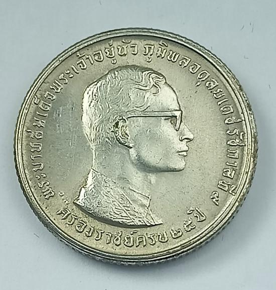 เหรียญที่ระลึกรัชกาลที่ 9 "ครองราชย์ครบ 25 ปี" พ.ศ.2514 เนื้อเงิน ครับ (P-2) (เนื้อเงินหนัก 5 กรัม)