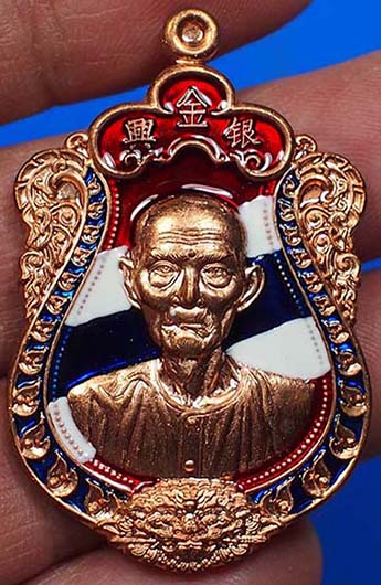 เหรียญเซียนแปะโรงสี รุ่นเจ้าสัวทองพันล้าน หลวงพ่อทองวัดบ้านไร่ จ.นครราชสีมา ปี 2563 เนื้อพิงค์โกลด์ ลงยาลายธงชาติ หลังยันต์ หมายเลข 206(เลขสวยครับรวมกันได้ 8 เฮงๆรวยๆครับ) พร้อมกล่องเดิม
