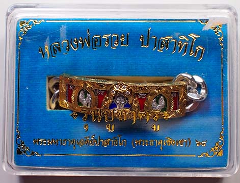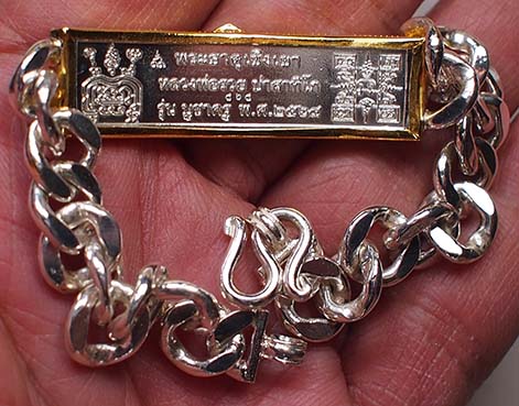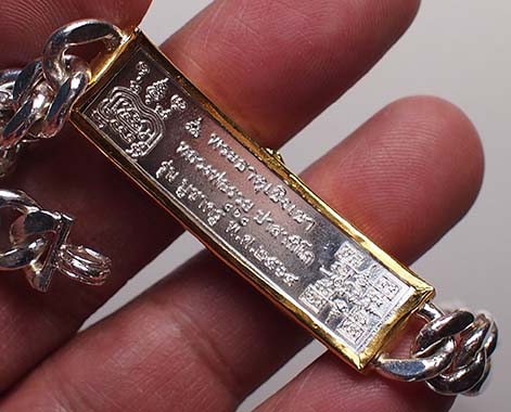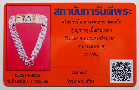 เลสหลวงพ่อรวย วัดตะโก รุ่นบูชาครู เนื้อเงินลงยา ปี 2564 จ.พระนครศรีอยุธยา หมายเลข 828 เลี่ยมกรอบทองคำแท้ 90% (ความยาวเลส 17.5 ซ.ม) พร้อมกล่องเดิมและบัตรรับรองสถาบันการันตีพระ