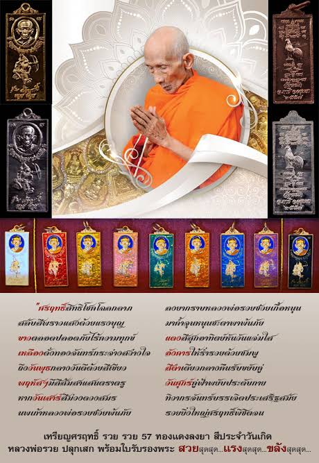 ศรฤทธิ์ รวย รวย แด่ลูกศิษย์หลวงพ่อรวย พร้อมภาพพิธีอธิษฐานจิตปลุกเสกเดี่ยว ณ วัดตะโก เลสรุ่น.ศรฤทธิ์ รวย รวย (ชื่อ สร้างมาจากนามสกุลเดิมของหลวงพ่อรวยท่าน ซึ่งหลวงพ่อรวย ท่านอนุญาตให้ท่านนายก.ไตรรัตน์ นายกอบต.หนองน้ำใส ซึ่งเป็นลูกศิษย์ ท่านได้จัดสร้างขึ้น เพื่อประกาศเกียรติ แด่นามสกุลเดิมหลวงพ่อรวย) รุ่น.ศรฤทธิ์ รวย รวย จึงดีเด่นดังทางในด้านเสริมศิริมงคลแด่ผู้สวมใส่ เพราะมีทั้ง พระรามแผลงศร (พระนารายน์อวตารลงมาเพื่อปราบยักษ์ทศกัณฑ์) มีทั้งไก่ชนพระนเรศวร ชนอุปสรรคให้ผู้ศรัทธาใส่ได้ชนะสมหวังทุกเรื่อง อีกทั้งไก่ยังเป็นสัญลักษณ์ของสัตว์ 12 ราศี ที่มีความขยันตื่นแต่เช้าออกหากิน และเป็นปีเกิดของหลวงพ่อ อีกทั้งมียันต์ประจำตัวหลวงพ่อรวย จึงถือได้ว่า ดีทุกทาง เสริมมงคลบารมี เป็นศิริมงคลแด่ผู้ศรัทธาอย่าง แน่นอนครับ |