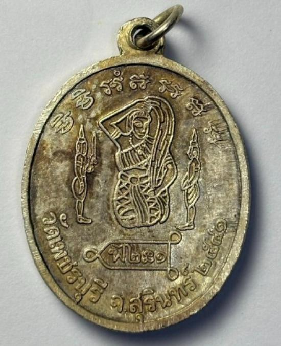 เหรียญหลวงปู่หงษ์ วัดเพรชบุรี รุ่นแรก พิมพ์หลังพระแม่โพสพ เนื้อทองแดง ปี2541 จ.สุรินทร์ สภาพกะไหล่เงินใหม่