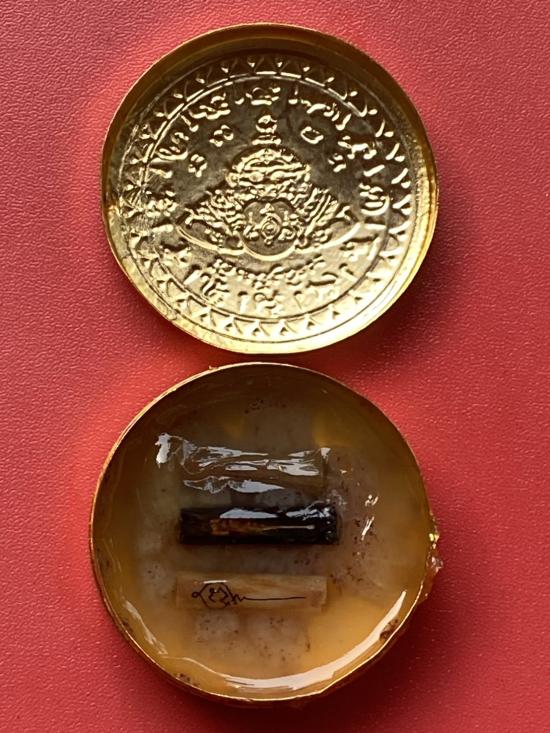 เนื้อ โลหะชุบทองลงยาสีดำขอบสีแดง ขนาด 5ซม |