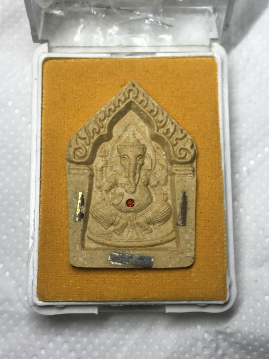 พระพิฆเนศ เนื้อผง ฝังพลอย ตะกรุด 3 กษัตริย์ รุ่น โชคดีมีสุข หลวงปู่หงษ์ วัดเพชรบุรี จ.สุรินทร์ ปี2547 พร้อมกล่องเดิม
