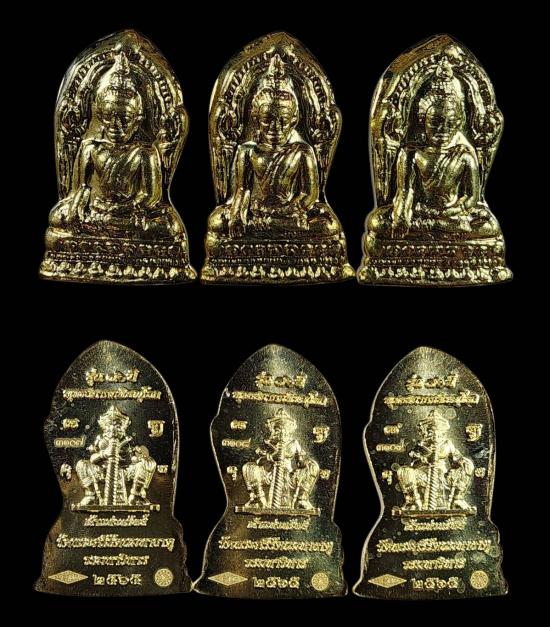 ( 3 องค์ ) พระพุทธชินราชใบเสมา รุ่น 70 ปีพุทธสมาคม เนื้อทองเหลือง วัดพระศรีรัตนมหาธาตุจังหวัดพิษณุโลก สภาพสวยครับ