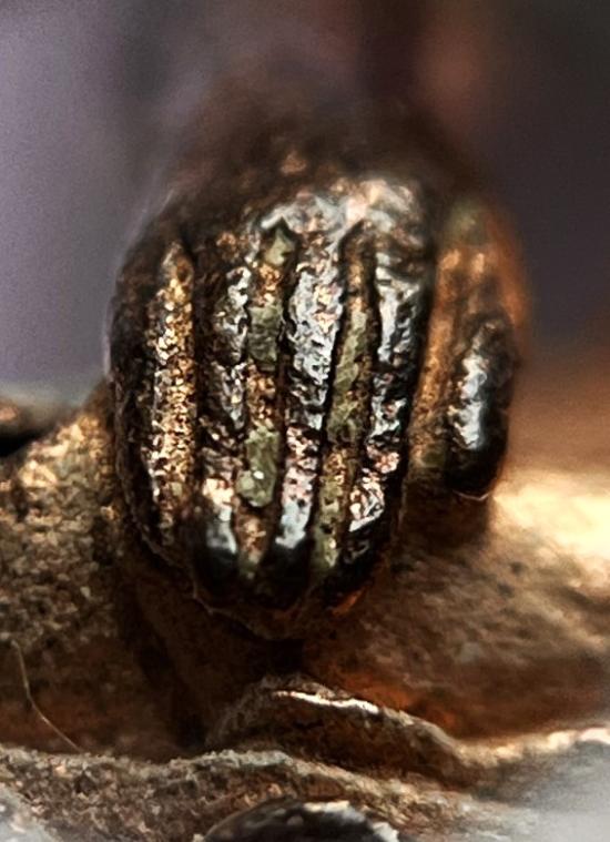 ****************เข่าซ้ายด้านบน มีตำหนิ เนื้อแหว่งหล่อไม่เต็มไม่สมบูรณ์ จุดที่ลูกศรชี้ มีภาพเพิ่มเติมด้านล่าง