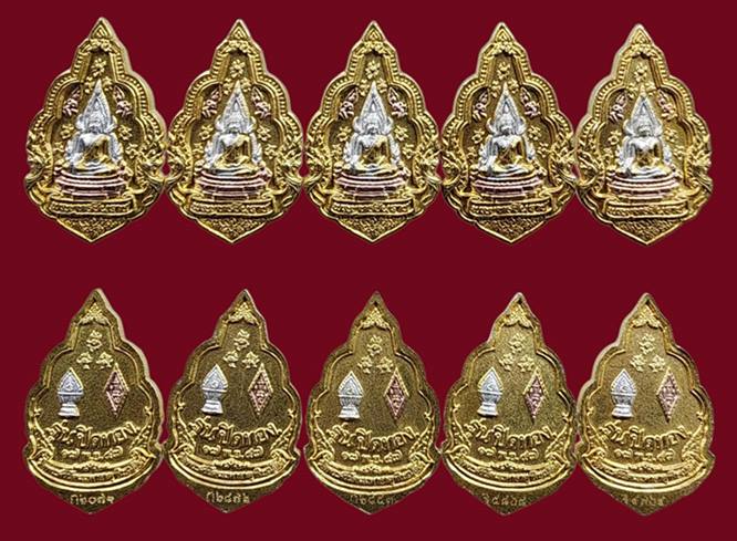 ( 5 องค์ ) เหรียญพระพุทธชินราช พิมพ์เล็ก ซุ้มเรือนแก้ว เนื้อสามกษัตริย์(มีโค๊ต) รุ่น ปิดทอง ปี 2547 สภาพสวยเดิมๆครับ