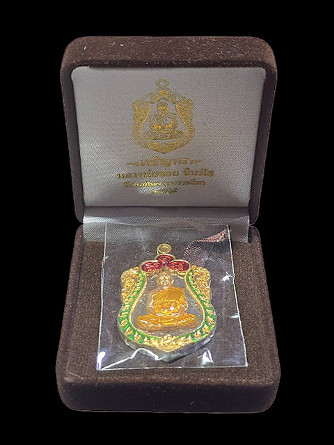 ***เหรียญเสมาปะฉลุ 3 ชิ้น รุ่น เจริญพร เนื้อพื้นอัลปาก้า ขอบทองทิพย์ องค์ทองแดงลงยา (หมายเลข 87) หลวงพ่อจอย วัดโนนไทย จ.นครราชสีมา ปี ๒๕๕๘ สร้าง 399 เหรียญ***
