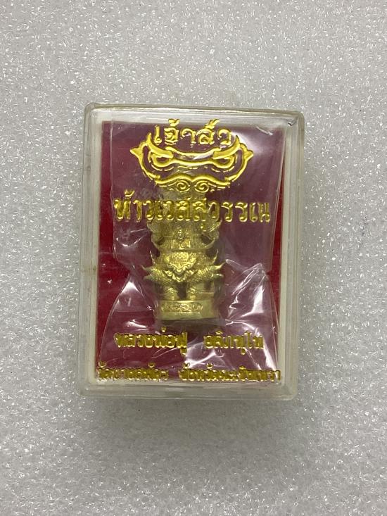 รูปหล่อท้าวเวสสุวรรณ รุ่นเจ้าสัว หลวงพ่อฟู วัดบางสมัคร จ.ฉะเชิงเทรา สูง 2.2 ซ.ม. กล่องเดิม |