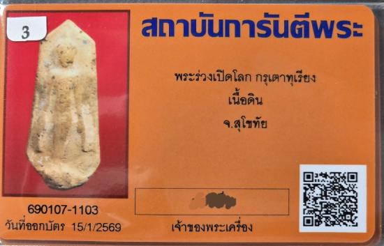 พระร่วงยืนเปิดโลก กรุเตาทุเรียงสุโขทัย สภาพสวยตามรูป พร้อมบัตรรับรอง