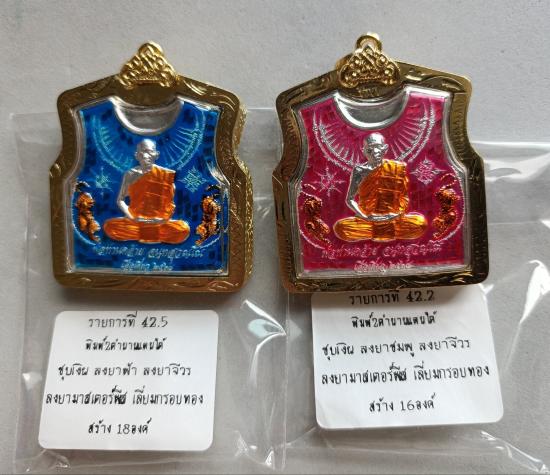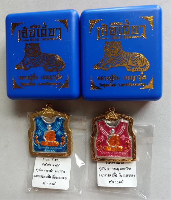 วัดใจเคาะเดียวแดงจ้า เหรียญเสื้อเกราะ หลวงปู่ทวด พ่อท่านคล้าย หลวงปู่อิ่ม วัดทุ่งนาใหม่ รุ่นเสือเดี่ยว เนื้อชุบเงินลงยาฟ้ามาสเตอร์พีซเลข9+เนื้อชุบเงินลงยาชมพูมาสเตอร์พีซหมายเลข5 เลี่ยมกรอบทองไมครอน คร