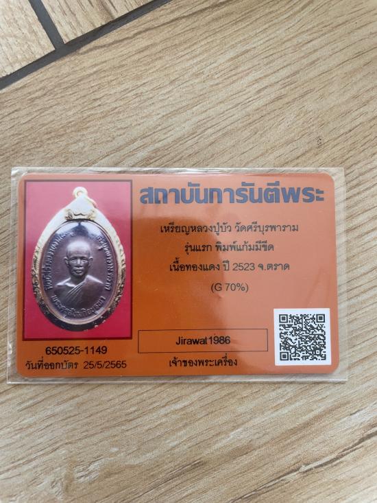 เหรียญรุ่นแรกหลวงปู่บัว ถามโก วัดศรีบูรพาราม เนื้อทองแดง มีบัตรออกตอนเลี่ยมทอง ตอนนี้เหลือแต่พระเปล่าๆ
