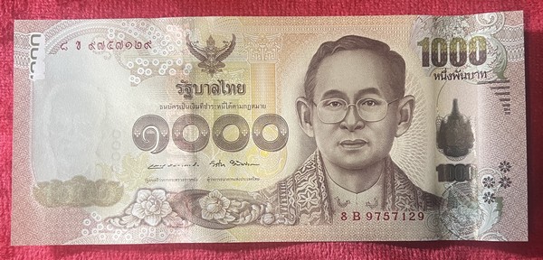 แบงค์ ธนบัตร 1000บาท ร.9/16 เลขสวย 9-9 UNC 8ช/B 9757129 สภาพสวยๆ