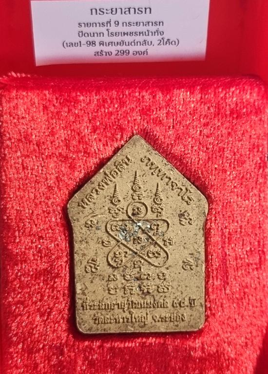 ขุนแผนพรายกุมาร ที่ระลึก อายุวัฒนมงคล ๙๘ ปี หลวงพ่อสิน วัดละหารใหญ่ จ.ระยอง (รก.9 กระยาสารท ปัดนาก โรยเพชรหน้าทั่ง เลข 152 เลขสวยๆ) พร้อมกล่อง |