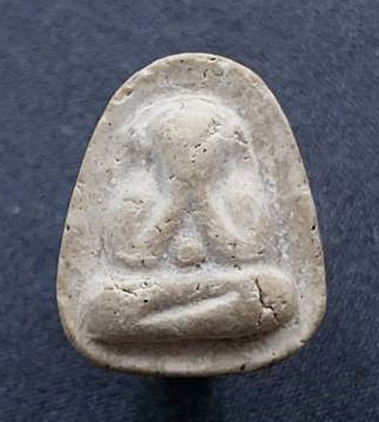 รายละเอียด พระปิดตาหลวงปู่เฮี้ยง วัดป่าฯ พิมพ์ปีกกว้างหลังแบบ เนื้อผง ปี2508