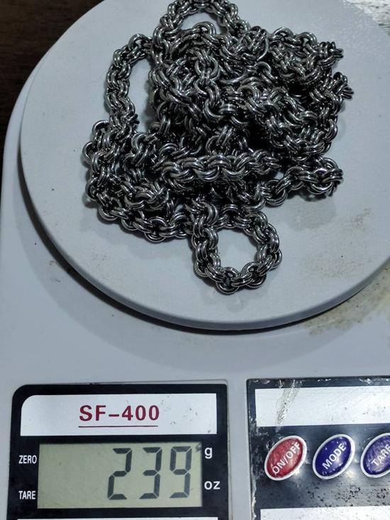 สร้อย สแตนเลสเส้นใหญ่ ทบครึ่งแล้วยาว29นิ้ว หนัก239กรัม ใครเล่นพระองค์ใหญ่ต้องมีครับ |