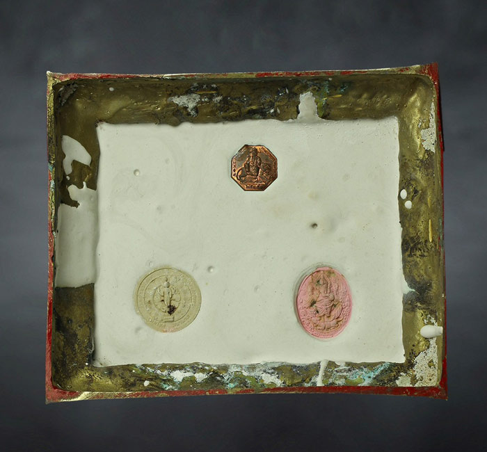 ใต้ฐานขนาด 6 นิ้ว X 7.5 นิ้ว หล่อขอบหนาอุดปูน....ฝังวัตถุมงคล 3 อย่าง !!