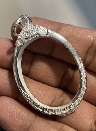 ตลับเงินปัดเงา ทรงรูปไข่ ขนาดขอบใน (กxสxหนา) (2.7 x 3.6 x0.6) Cm.หรือขนาดเหรียญใกล้เคียง |