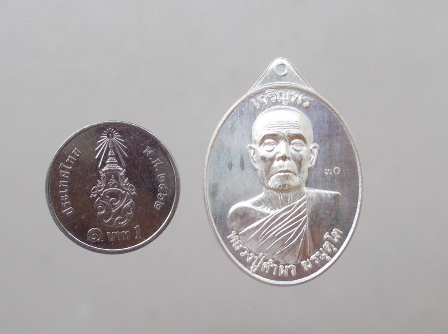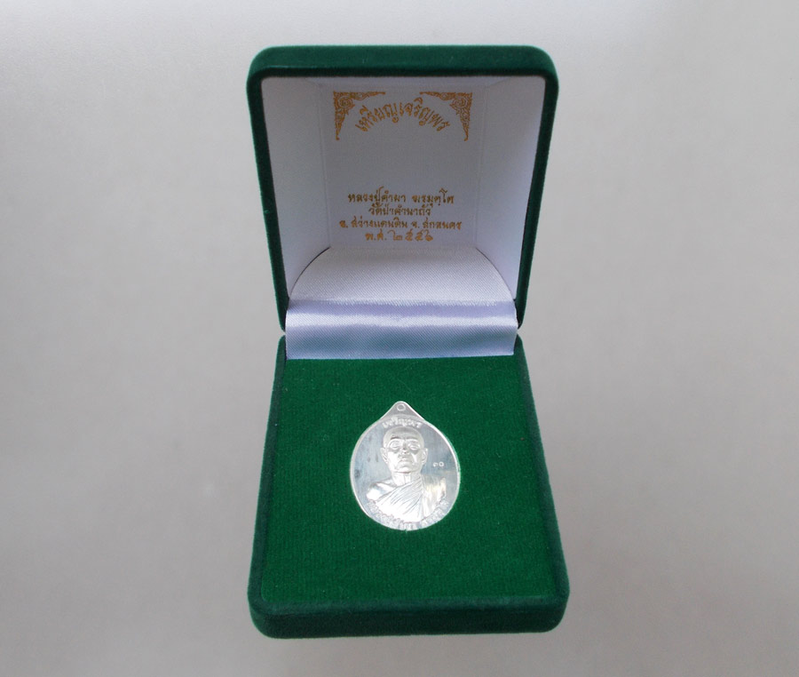 เหรียญเจริญพร ไม่มีห่วง หลวงปู่คำผา ฆรมุตฺโต วัดป่าคำนกถัว จ .สกลนคร พ.ศ.2556 เนื้อเงินหลังเรียบ ตอกโค๊ต ตอกเลข นอนกล่องเดิมๆ !! |