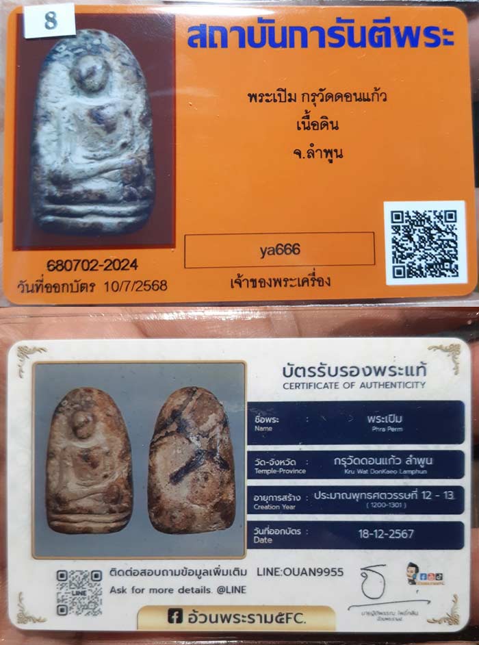 พระเปิม กรุวัดดอนแก้ว จ.ลำพูน ++บัตรรับรอง2ใบครับ++ |