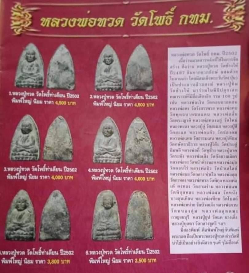 หลวงพ่อทวด วัดช้างให้ ปี2502 วัดโพธิ์ท่าเตียน<วัดพระเชตุพนฯ>พิมพ์ใหญ่เนื้อว่านคราบกรุเก่า |