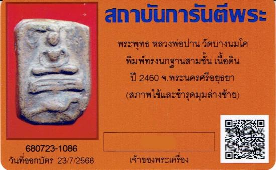 พระหลวงพ่อปาน วัดบางนมโค พิมพ์ทรงนกฐานเขียง+บัตรรับรอง2สถาบัน