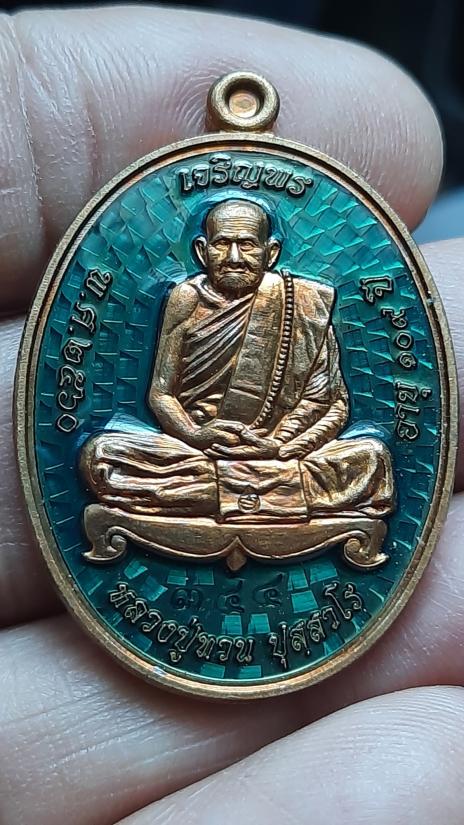 เหรียญเจริญพร หลวงปู่ทวน เนื้อสัตตะโลหะลงยาสีฟ้า /หมายเลข 344