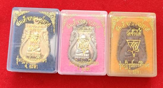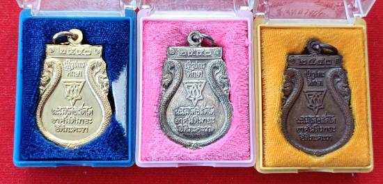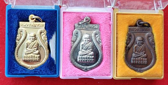 หลวงพ่อทวด ปี40 รุ่นปฏิรูปการศึกษา เนื้อ กะไหล่เงิน กะไหล่ทอง ทองแดง ยกชุด 3 เหรียญพร้อมกล่อง |