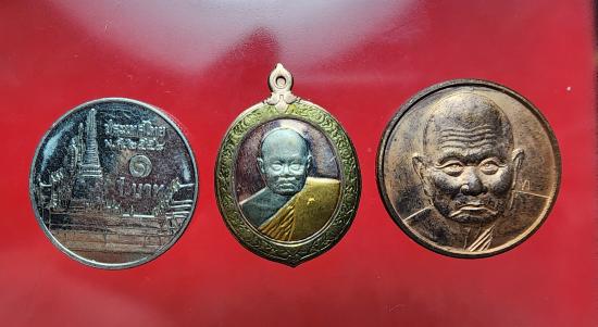 เหรียญที่ระลึกยกช่อฟ้าหลวงปู่ทิมวัดพระขาว ปี 42 เนื้อลงยาสามกษัตริย์ +เหรียญปี 40 อีกหนึ่งองค์ วัดใจเคาะเดียวครับ |